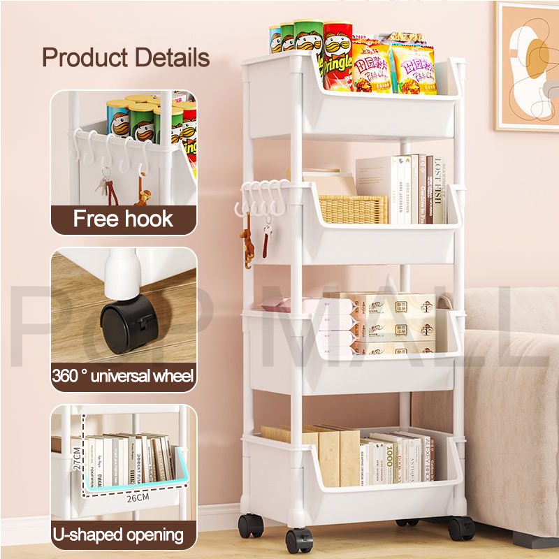 YAKO 2-5 Layer Book Shelf Moving Rack Organizer Bathroom Trolley Cart Kitchen Storage Rack Rak Buku 收納架