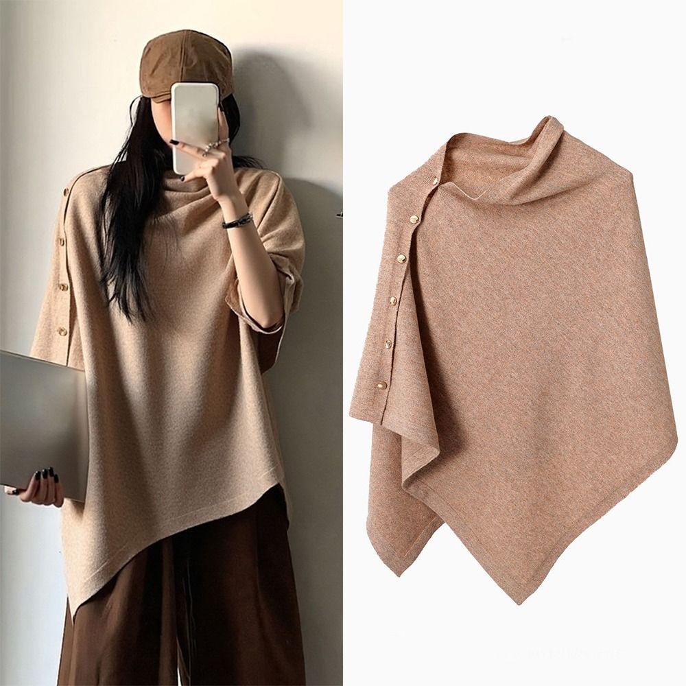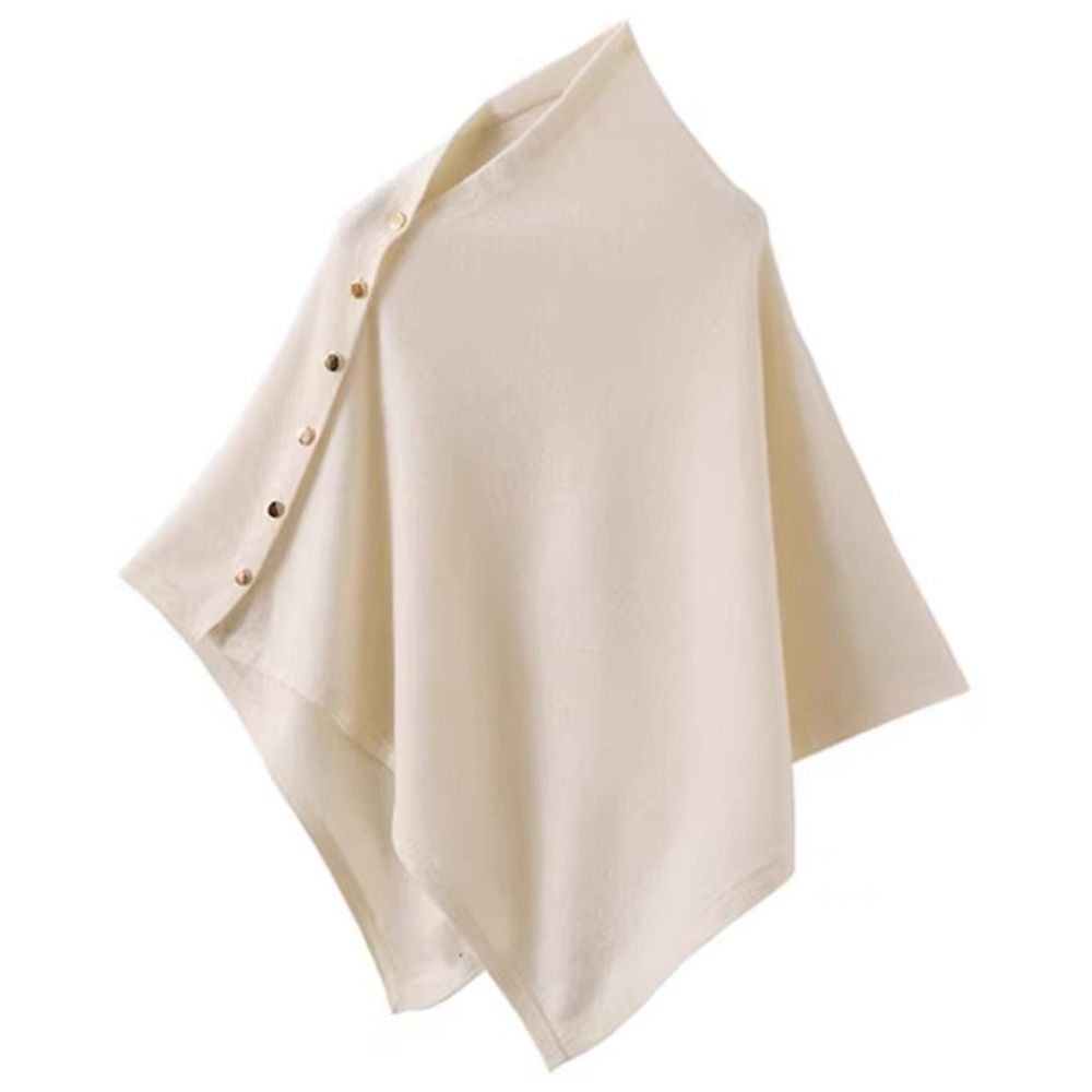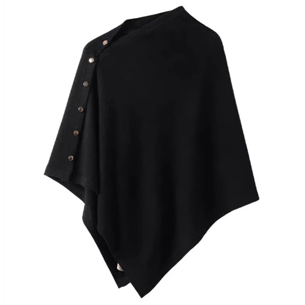 YANMIG Pashmina Shawl, Warm Irregular Knitted Thick Warm Poncho, Thick Casual with Button Shoulder Top Autumn Winter