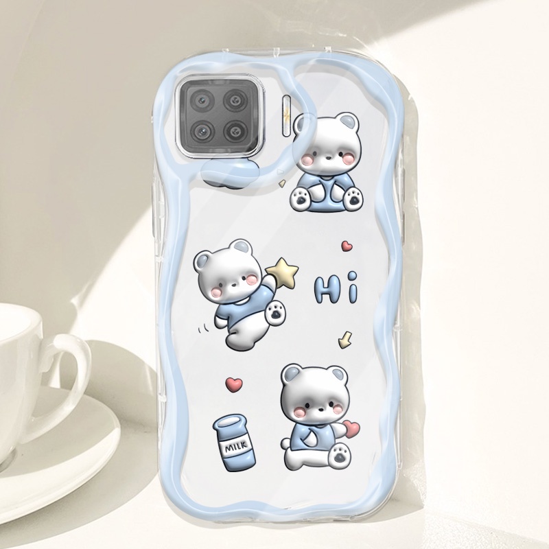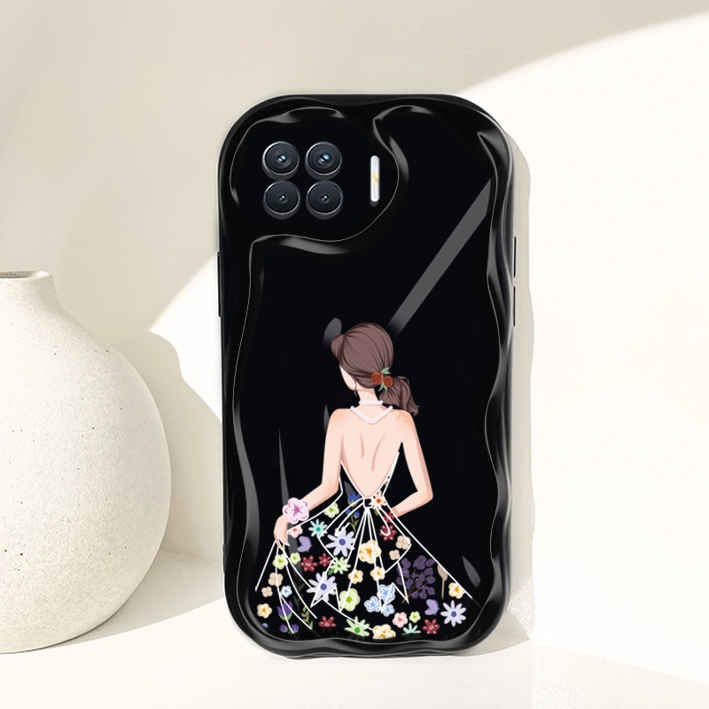 YBD Cute Wave Phone Case for OPPO A73 2020 F17 A93 2020 Reno 4F Reno 4 Lite F17 Pro Small Fresh Flowers and Cute Little Dog Patterns Silicone Material Soft Shell