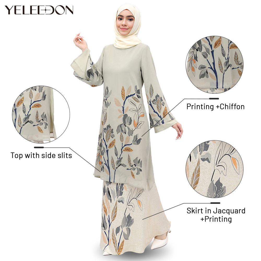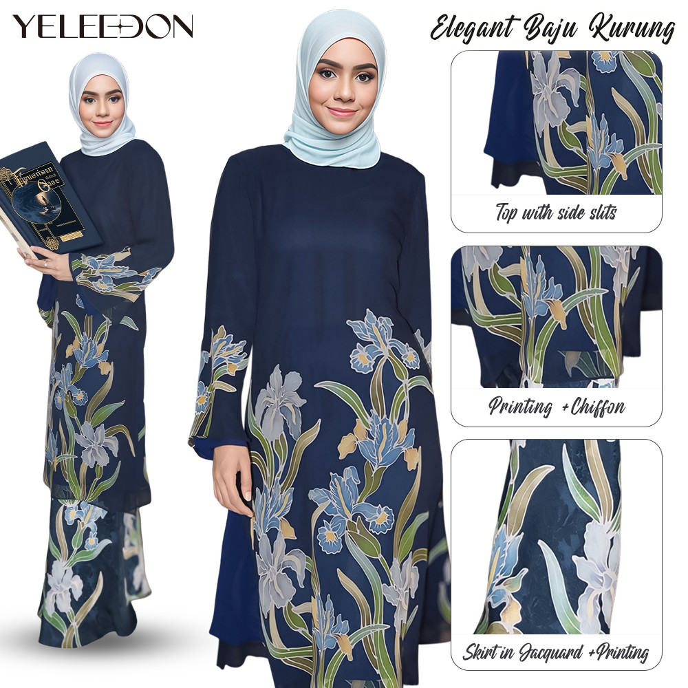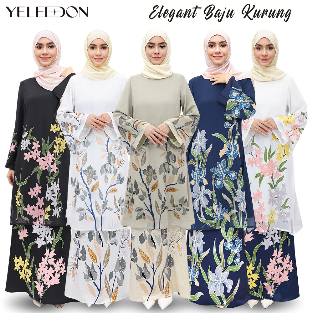 YELEEDON Baju Kebarung Modern Baju labuh klasik Baju Raya Haji 2025 Nikah/Tunang Kurung kurung kedah Floral Kurung Ironless Sesuai Untuk Kurung