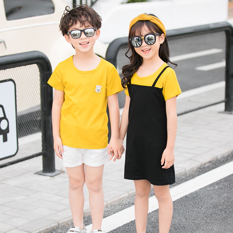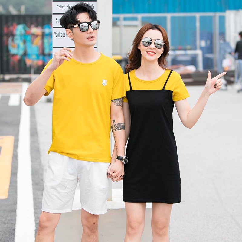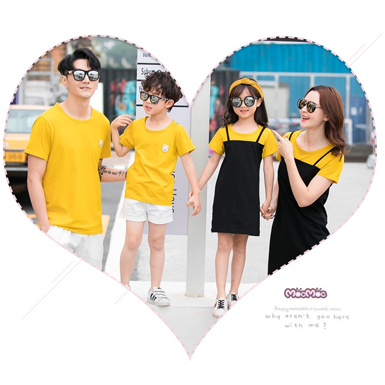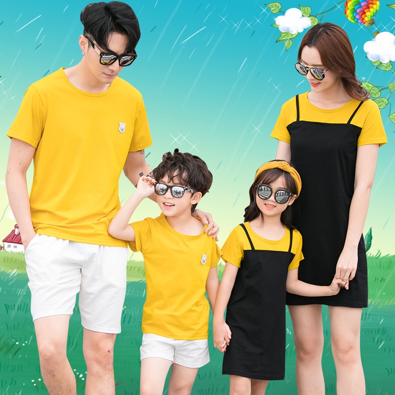 Yellow Cotton Family Outfits Shirt Women Blouse Girl Dress Couple Clothes Men Short Pants