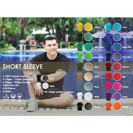 YELLOW KUNING plain tshirt UNISEX round neck BAJU KOSONG XS - 5XL 100% cotton ALAM FASHION