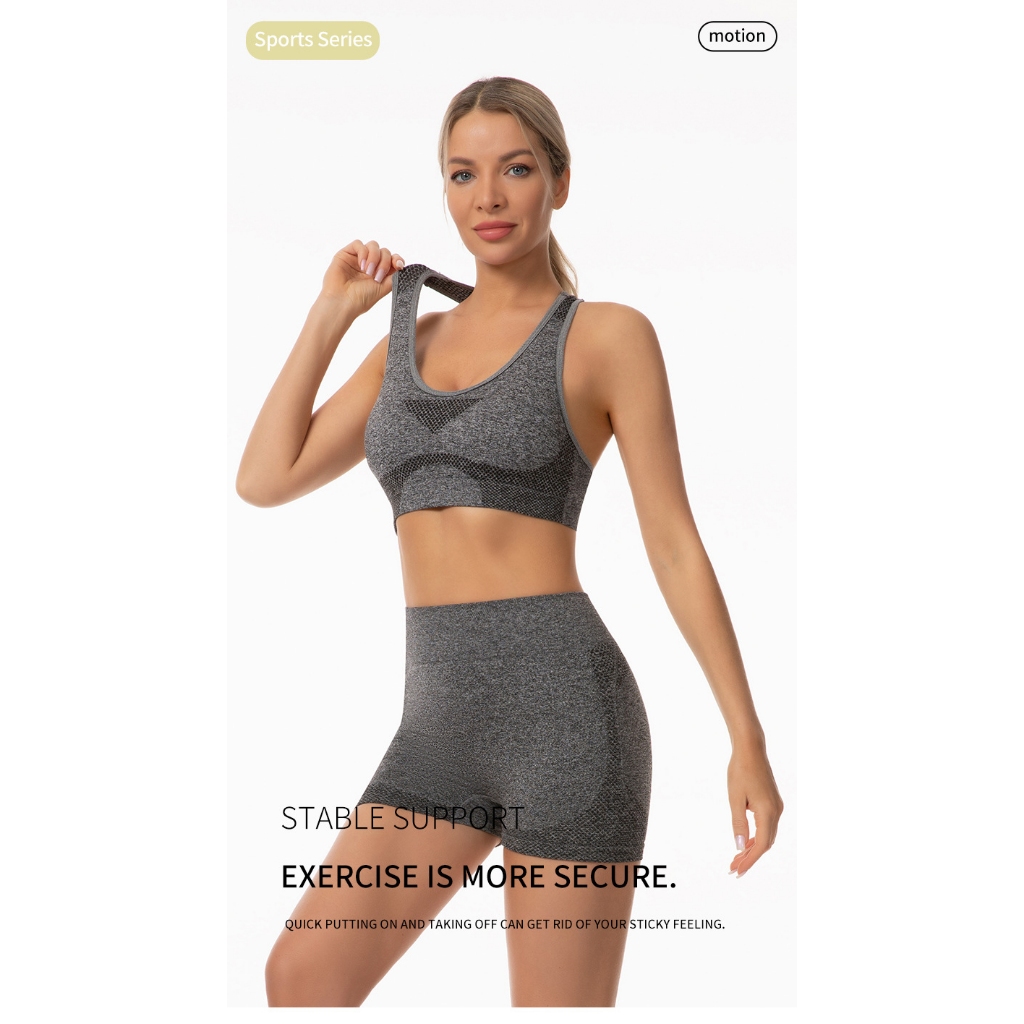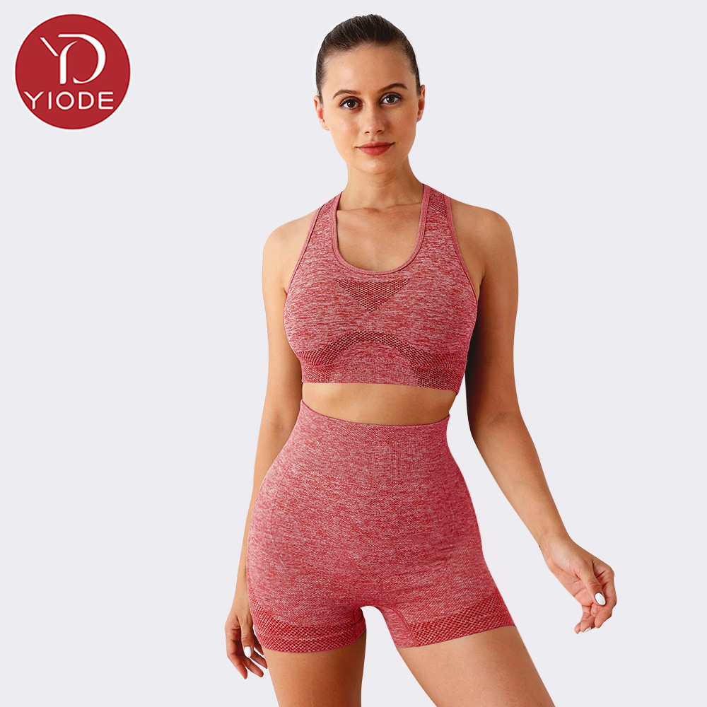 Yiode 40-90kg Women's seamless high waisted tight yoga sportswear bra shorts fitness set