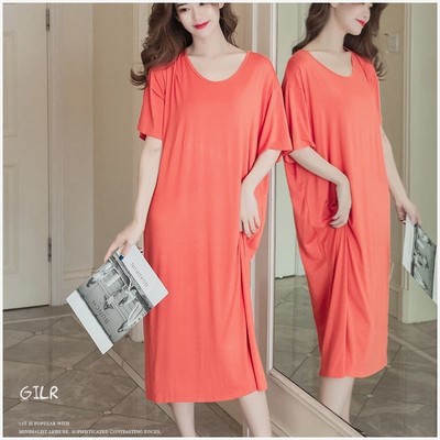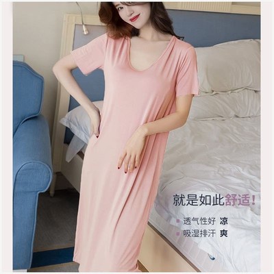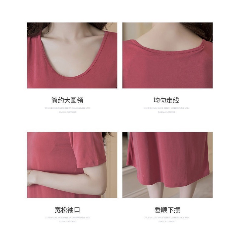YiYiYi Ready Stock Pajamas Baju Tidur Solid color pajamas pajamas with chest pad women's nightdress loose large size home clothes casual pajamas 睡裙 连身睡衣 带胸垫睡裙 家居服