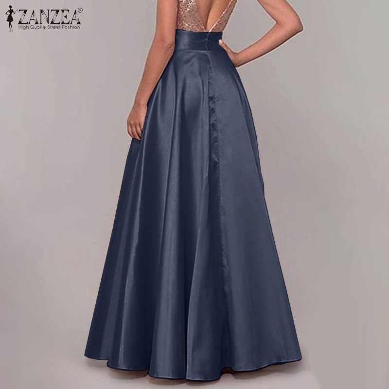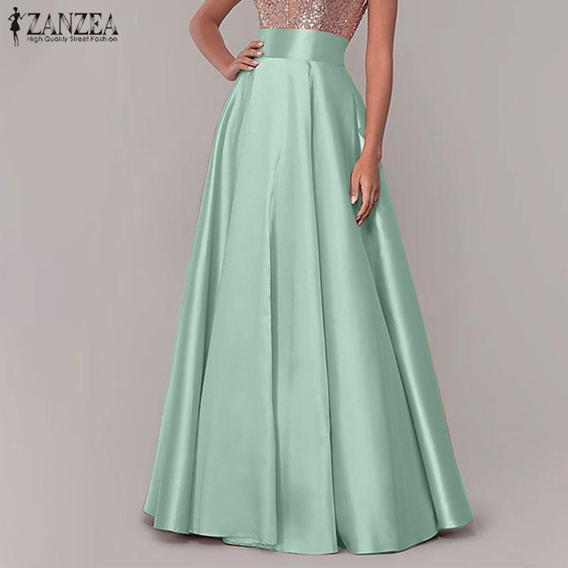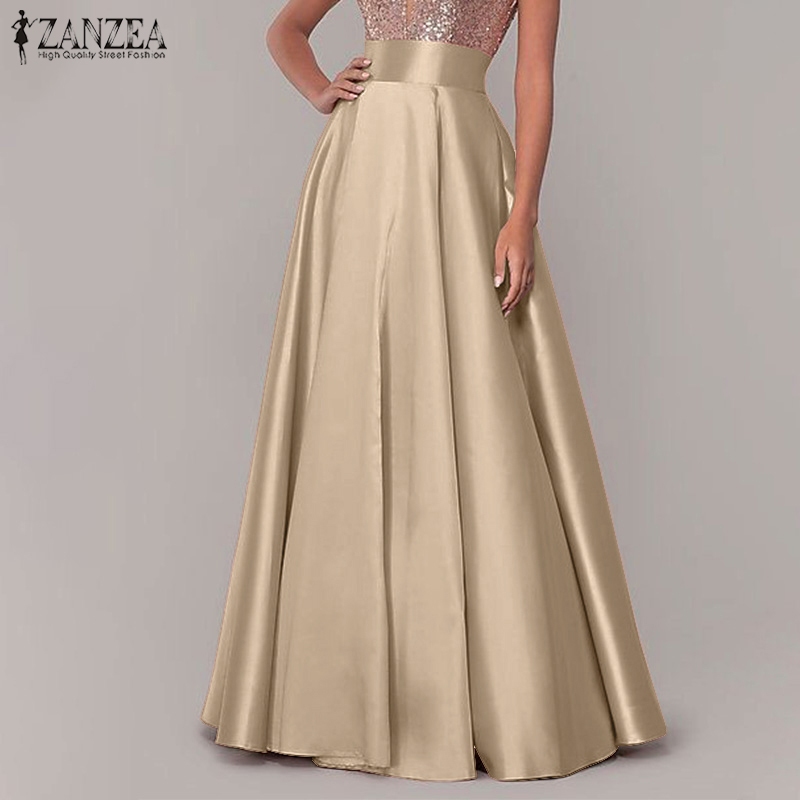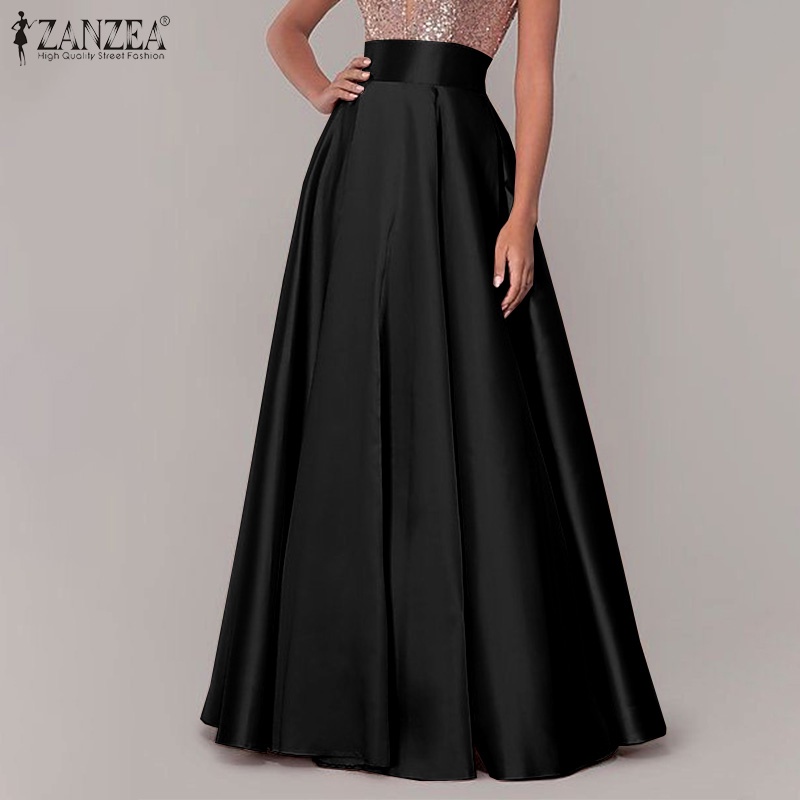 ZANZEA Women Fashion Satin Back Zipper Elastic High Waist Casual Maxi Skirt