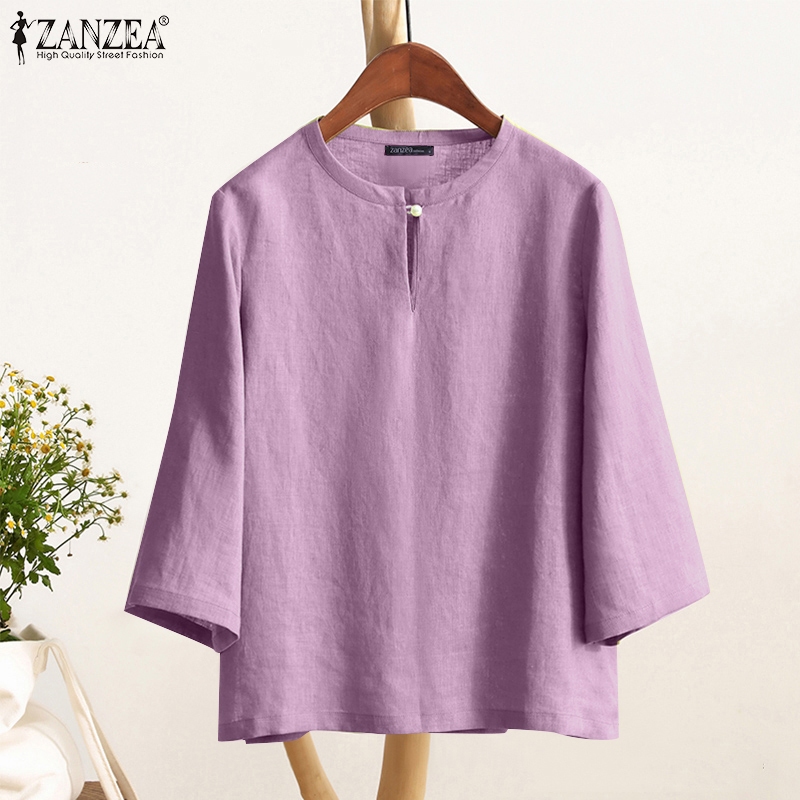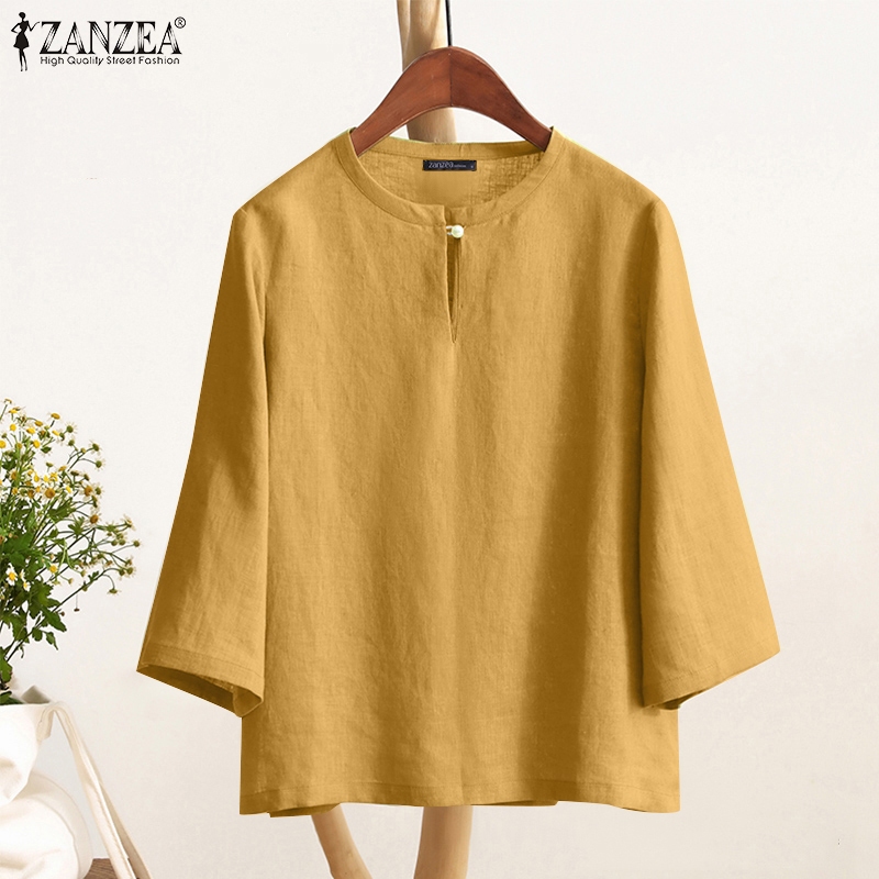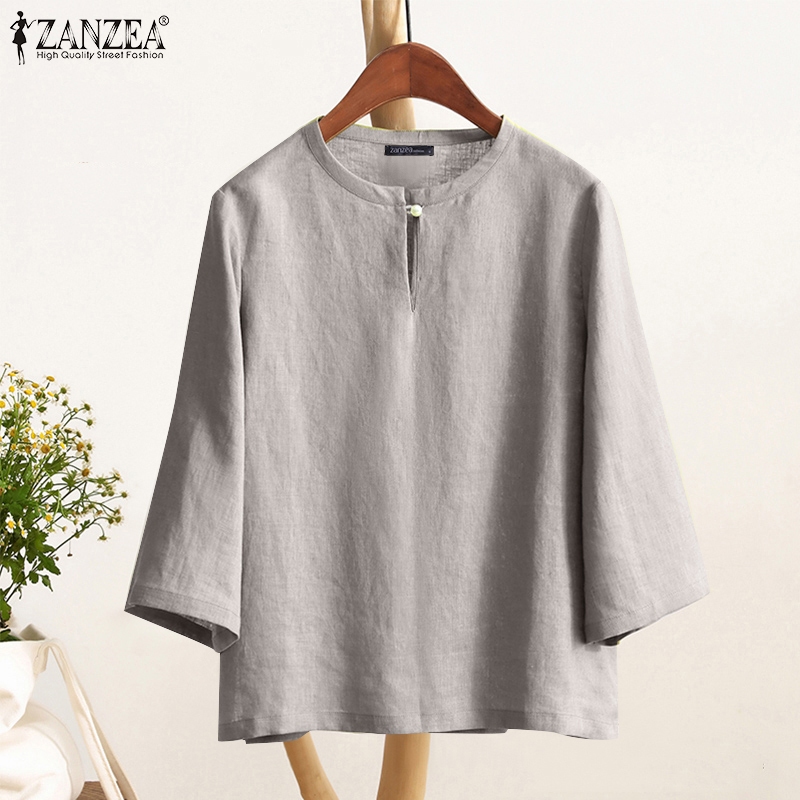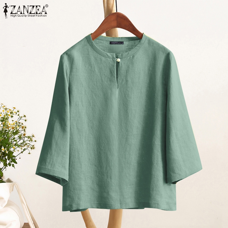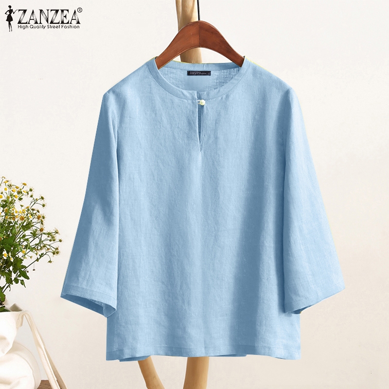ZANZEA Women Korean Daily Casual Round Neck Three-Quarter Sleeve Blouse