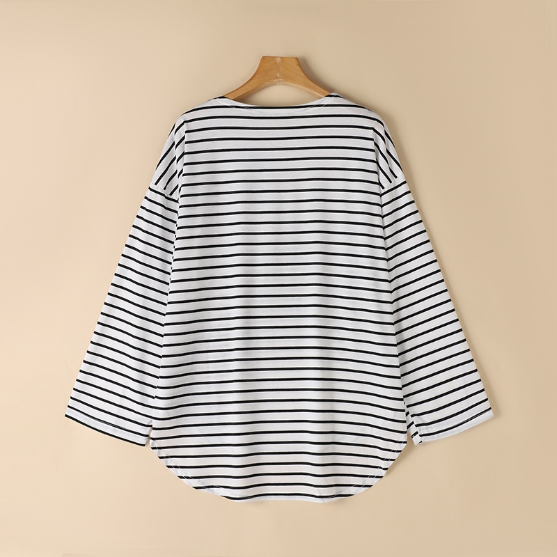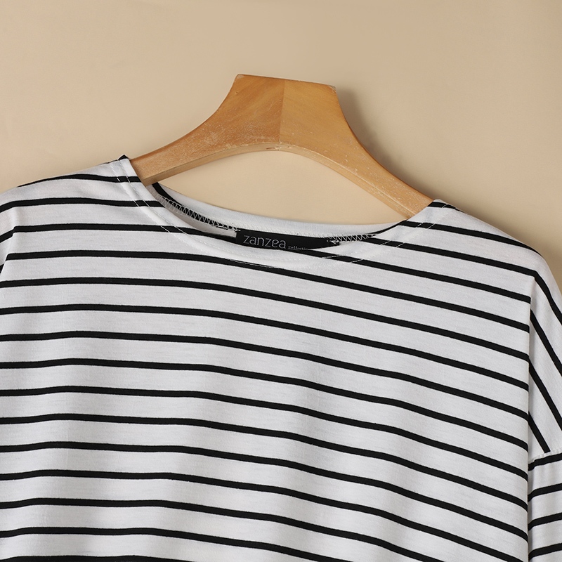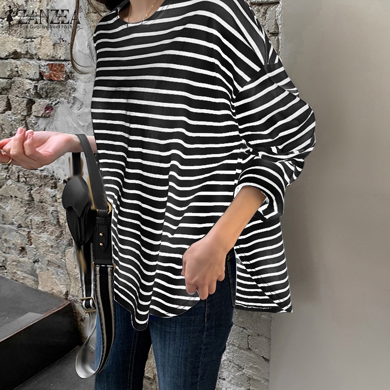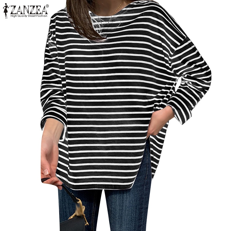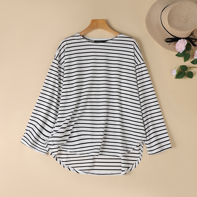 ZANZEA Women Korean Long Sleeves Round Neck Knit Stripe Printed T-Shirts
