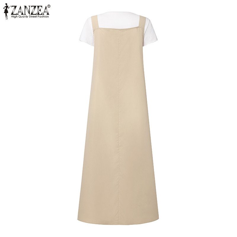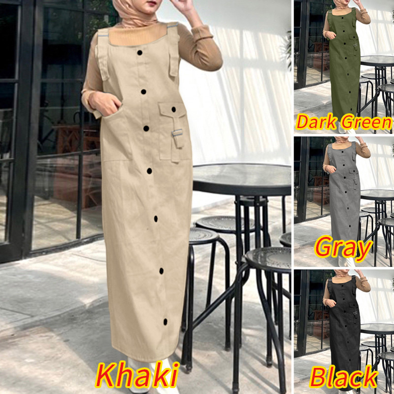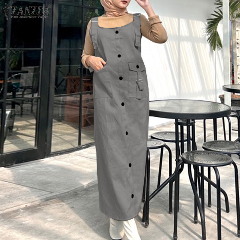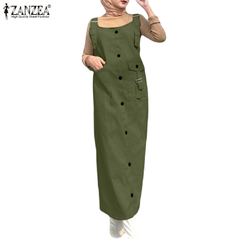 ZANZEA Women Muslim Commuting Fashion Single Breasted Work Bag Work Style Backstrap Dress