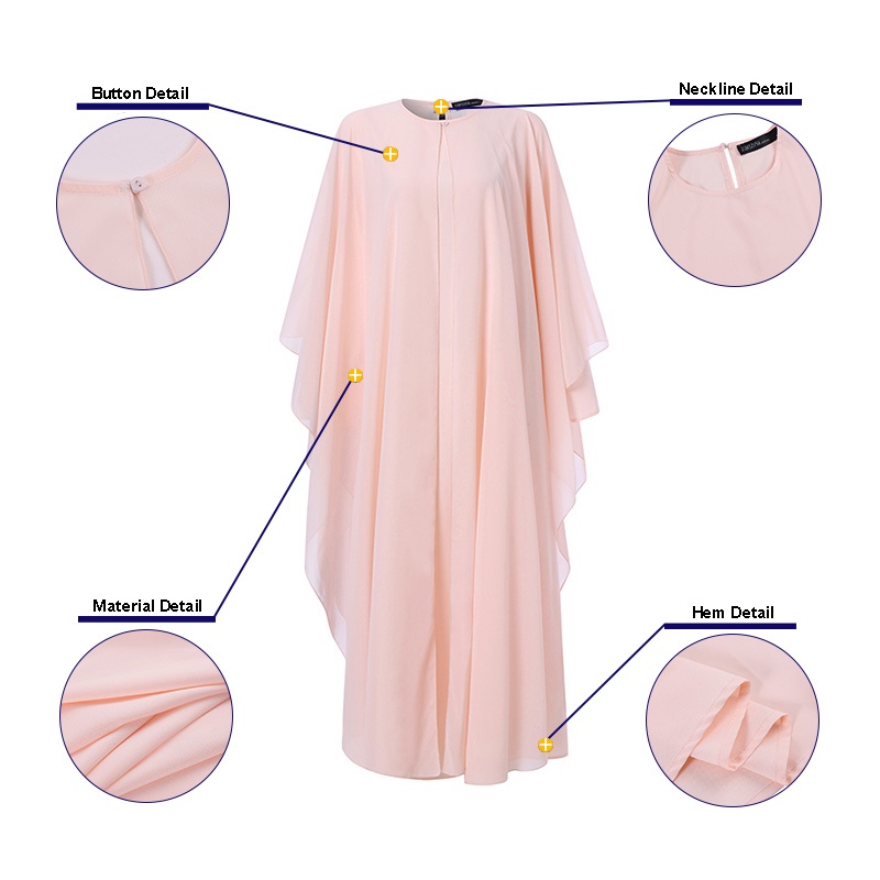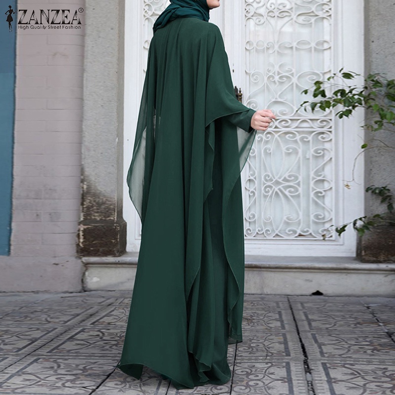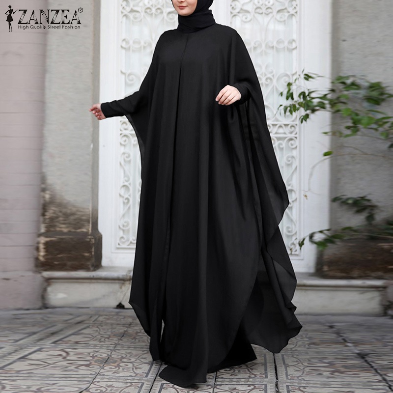 ZANZEA Women Solid Two-Piece Bat Sleeve Vintage Muslim Maxi Dress