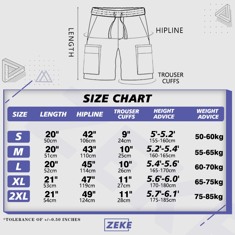 ZEKE B0032 Men Cargo Shorts Cutting Straight Cut Trouser Tactical Six Pocket Working Menswear Cargo Pants