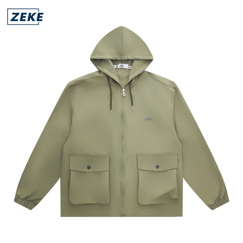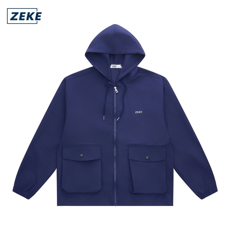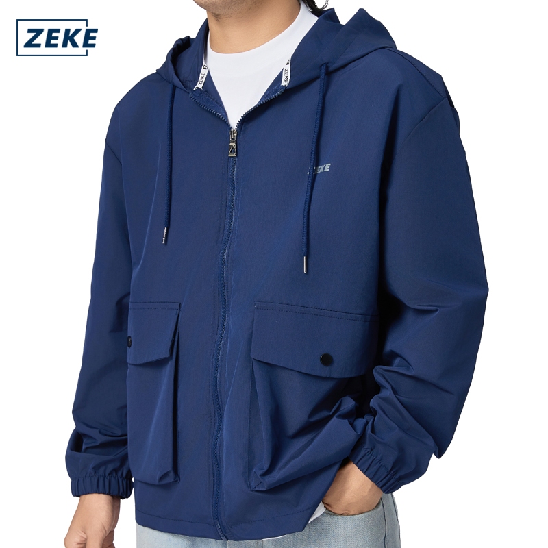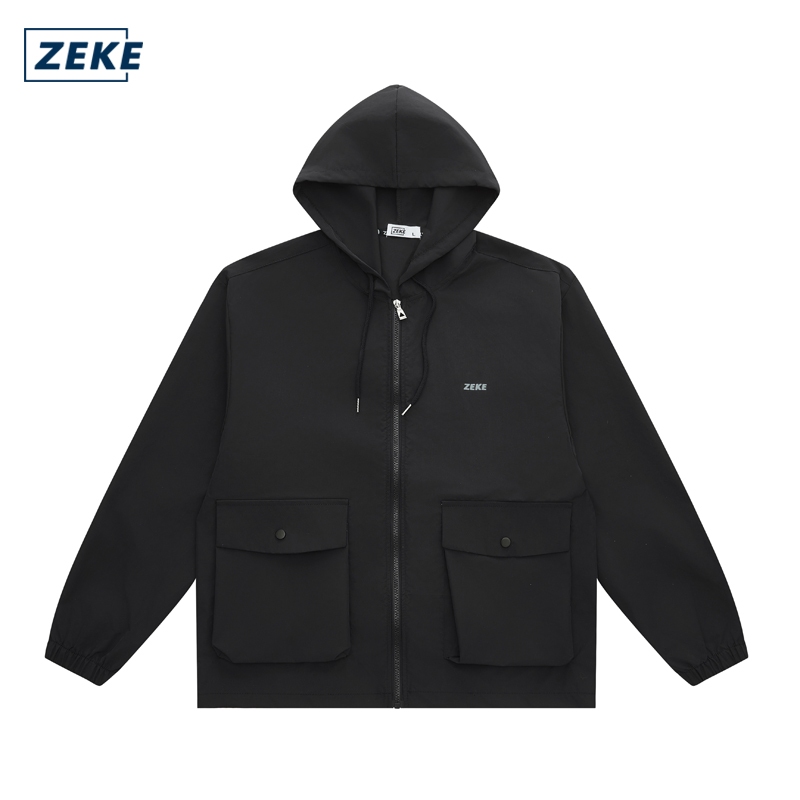 ZEKE C0039 Men's Cargo Hooded Jacket Double Pocket Plain Tops Reflective Windbreaker