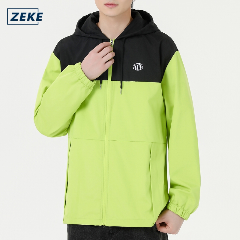 ZEKE C0050 Waterproof Two-tone Jacket Men's Embroidered Logo Tops Menswear Casual Hooded