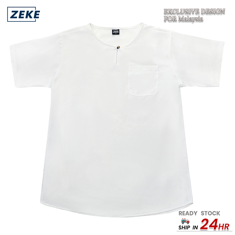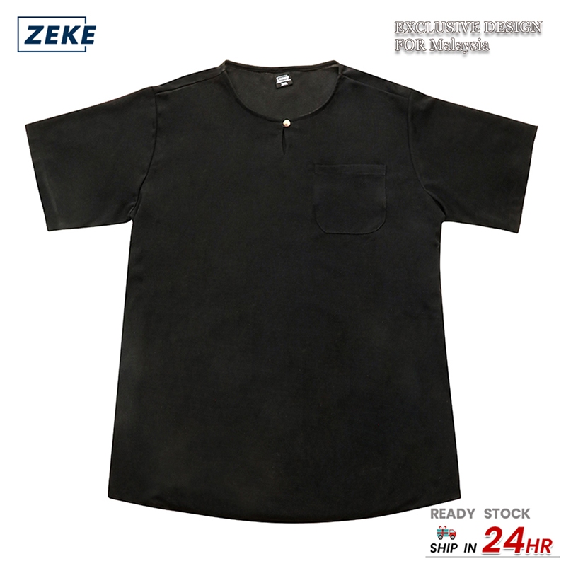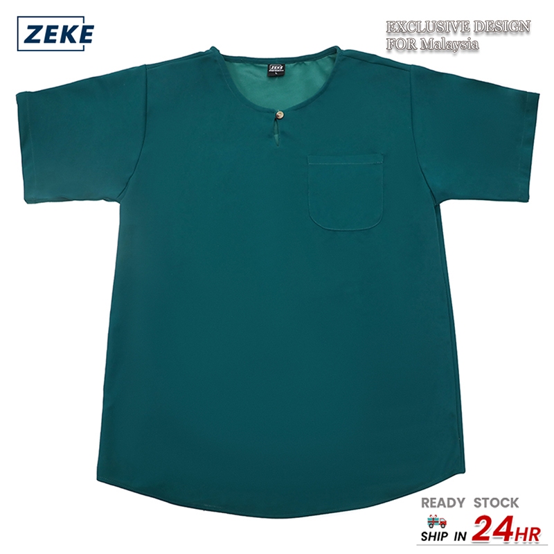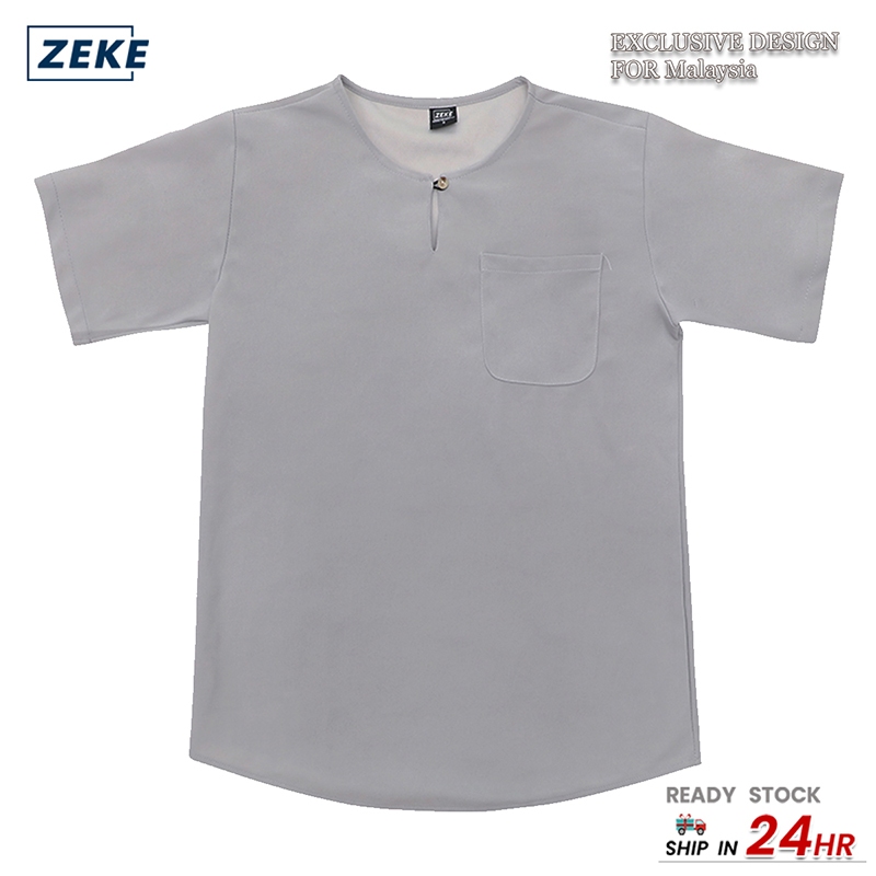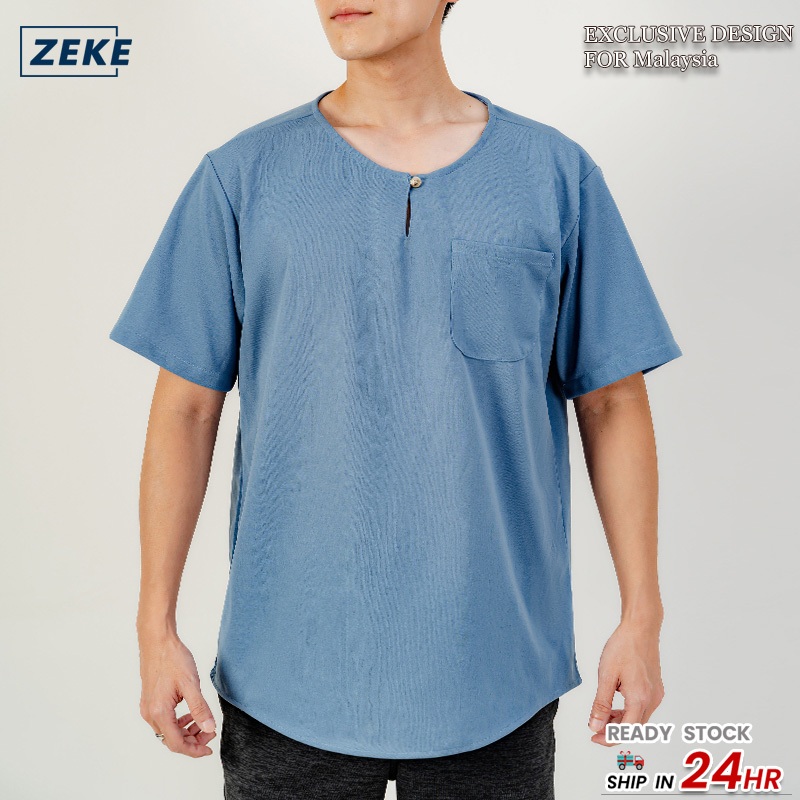 ZEKE D0024 Lelaki Kurta Kasual Lengan Pendek Men's Pocket Short Sleeve Loose Tops