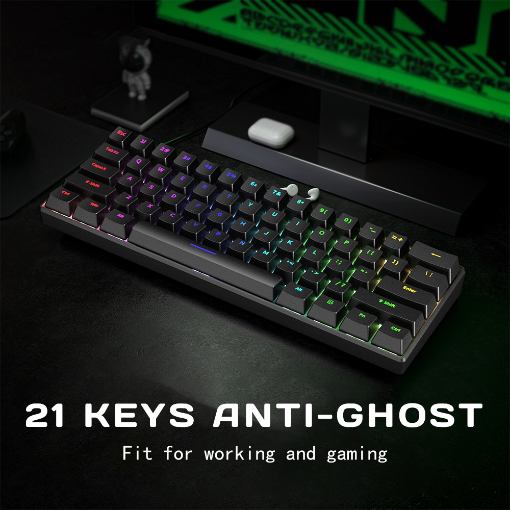 ZIFRIEND H61K Mechanical Keyboard 61 keys Small Keyboard Swappable Rainbow Light Gaming