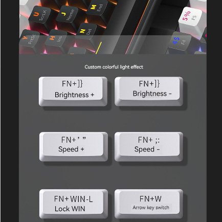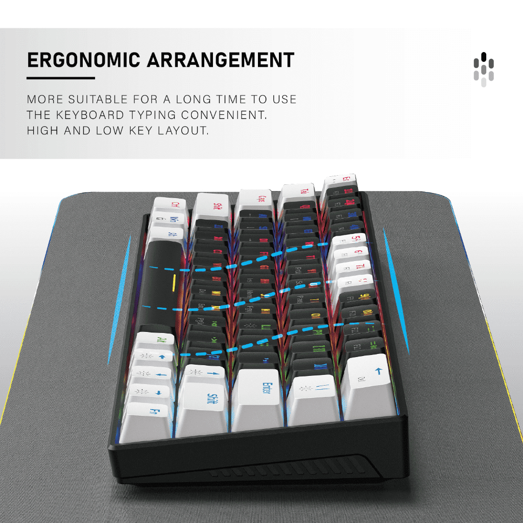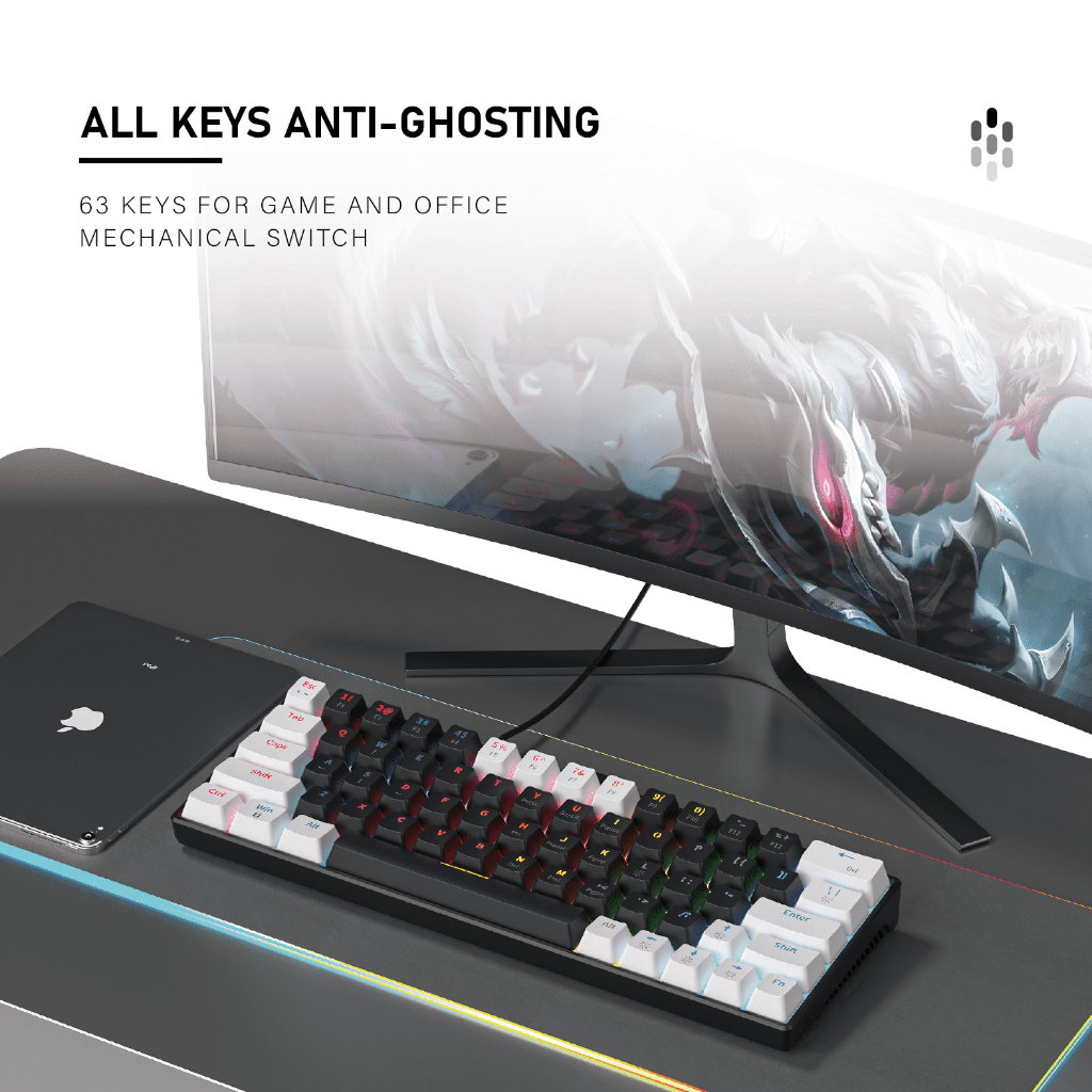 Zifriend KA646 Mechanical Keyboard Swappable Rainbow backlight Gaming Wired 63 Keys