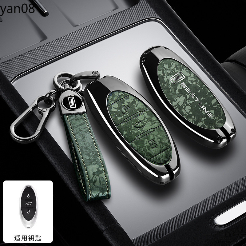 Zinc Alloy Leather Key Case Cover for For FAW BESTUNE B70 E01 NAT M9 T99 T77 T33 T55 B70S Car-Styling Remote Decoration Cover Shell Keychain Holder Accessories