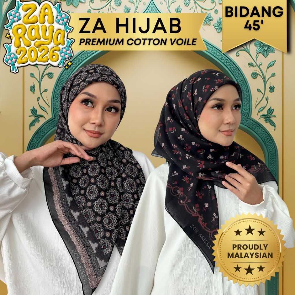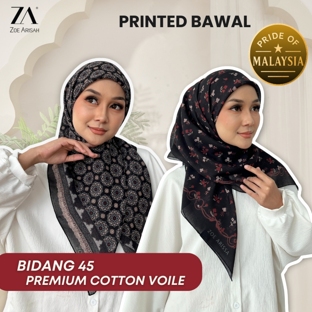 ZOE ARISAH TUDUNG BAWAL PRINTED BIDANG 45 HIJAB COTTON VOILE Bercorak Scarf Shawl Muslimah Collection Baru ZOE ARISSA