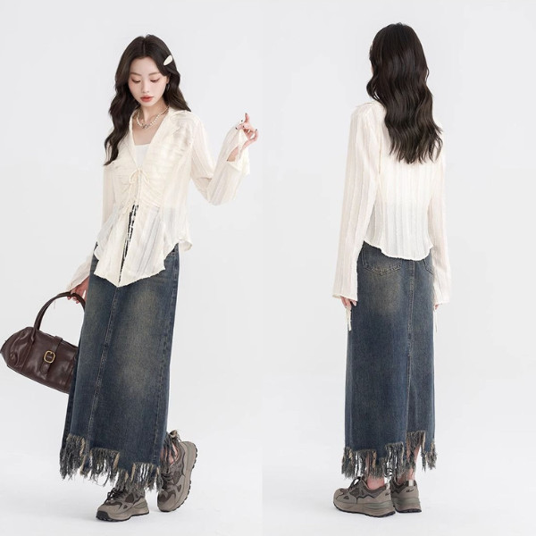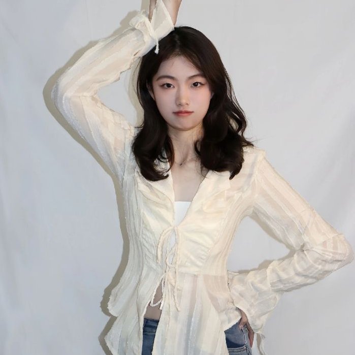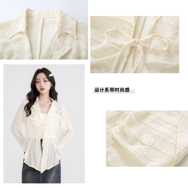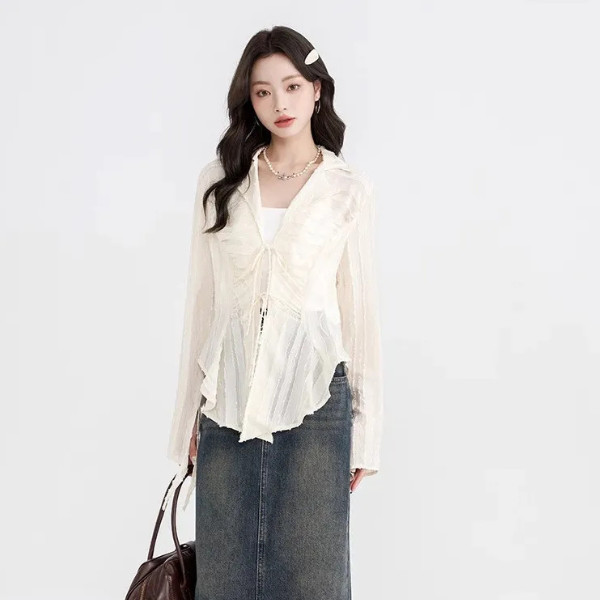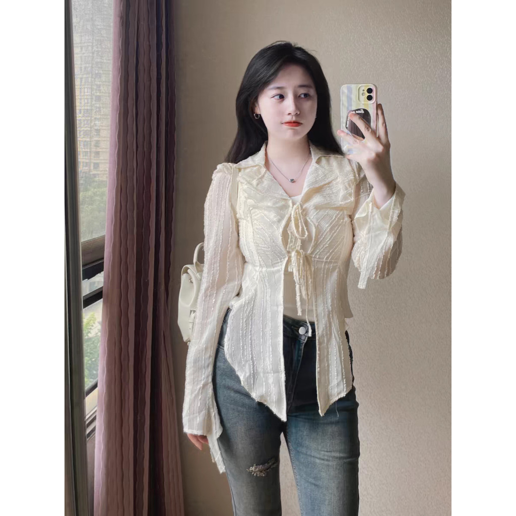 ?Zsndp?[Ready Stock In Malaysia]Korean style women ladies loose chiffon ruffle irregular lace-up long sleeve shirt blouse shirt women shirt